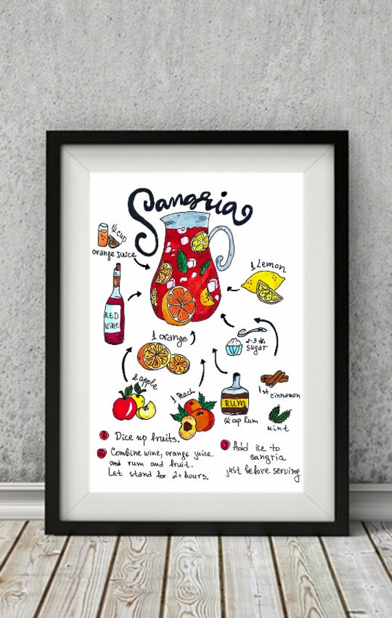 Sangria Recipe Print. Recipe Sangria Watercolor Art Print. - Etsy Hong Kong